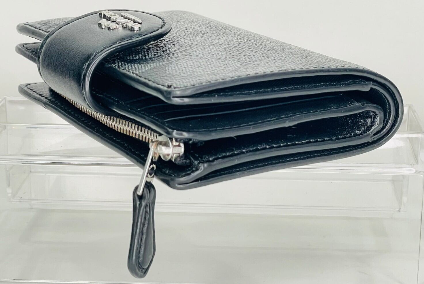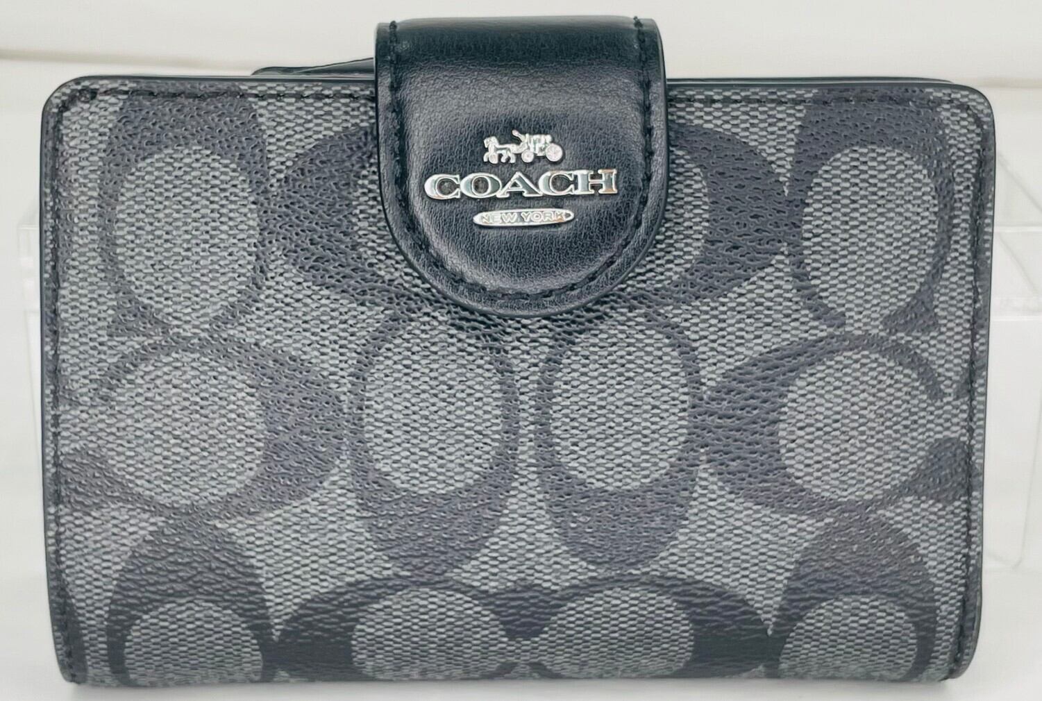 商品名:コーチ ファクトリー アウトレット COACH FACTORY 財布 シグネチャー 二つ折り財布 折りたたみ財布 グレー+ブラック系